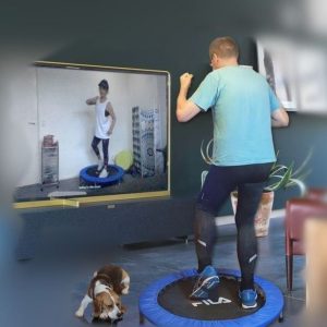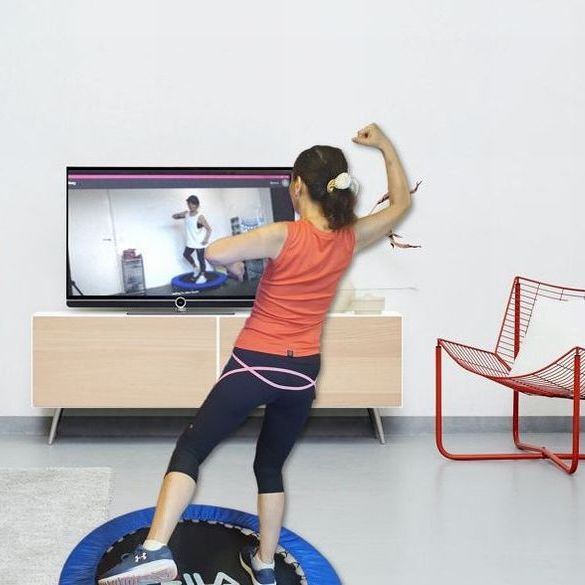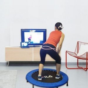 音楽に合わせながらトランポリン(またはジャンピングボード)で行う簡単なのに効果抜群のエクササイズです。
